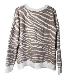 Cozy and chic Banana Republic Factory sweater featuring a tan and cream zebra animal print design.