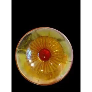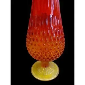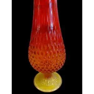Keywords: vintage glass vase, hobnail vase, art glass vase, red orange vase, fluted vase, trumpet vase, mid century modern decor, retro vase, collectible glass, statement vase, decorative vase, hand blown glass, textured glass, home decor accent, unique vase