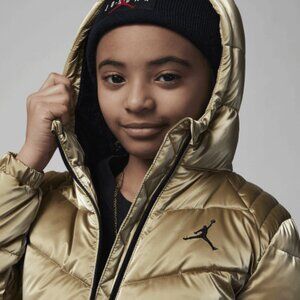 Jordan Iridescent Gold Puffy Jacket Size Medium Fleece Lined