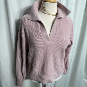 Reitmans Pink Cashmere Blend Ribbed V-Neck Collared Johnny Polo Sweater Size S