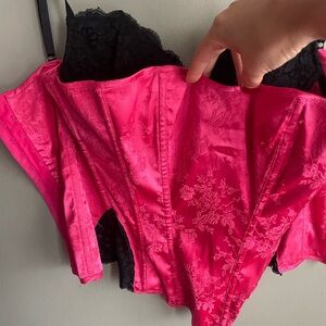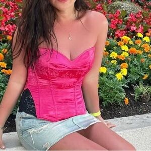 Stylish pink corset top for a bold look. Perfect for a night out or casual wear.