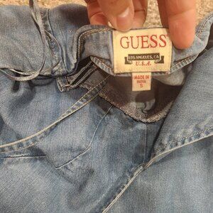Guess Women's blue Slit-Front V-Neck Solid Denim Maxi Dress Boho 70s