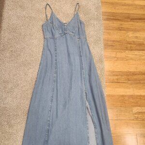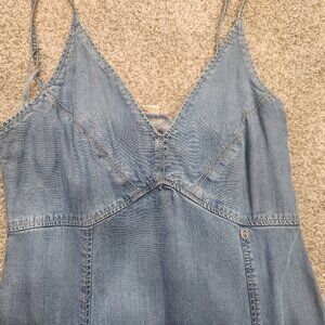 Stylish blue denim dress with spaghetti straps. Perfect for casual outings. Very Good condition.