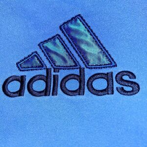 This blue Adidas hoodie is perfect for boys size 4T. It features a pullover closure, long sleeves, classic Adidas stripes, and an embroidered design on the front and embroidered “Hoops” down the sleeve. The hood adds an extra touch of style, making it a great addition to any kid's wardrobe.