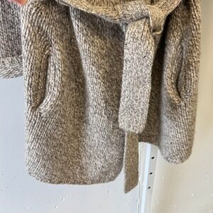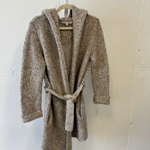 Naked Cashmere Marled Chunky Knit Hooded Cardigan Robe Belted Relaxed Taupe Sm