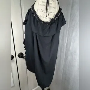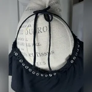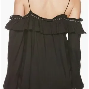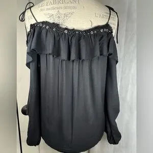 PAIGE Journee Tie Shoulder Blouse Grommets and Ruffle Detail Black Size Medium