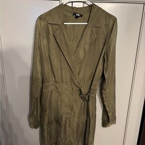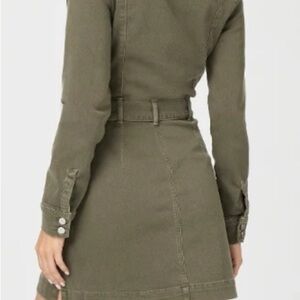 This adorable long sleeve mini dress is designed with a self-belt, v-neckline, and seaming details. Cut from soft denim with a hint of stretch in Vintage Green Forest, this effortlessly cool dress is the perfect addition to your wardrobe.