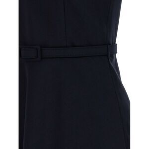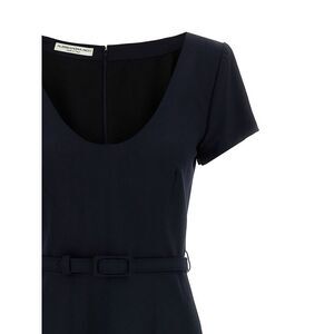 Light wool midi dress with belt at the waist, round neckline, back zip closure, short sleeves. True to size fit