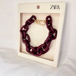 Authentic ZARA oversized matte brown chain necklace featuring large resin links and gold carabiner clasp detail.