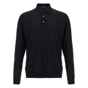 'Ciro' polo shirt in 14 micron fineness stretch wool, collar and buttons, long cuffed sleeves. true to size fit