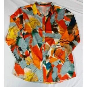 Zeroyaa Men's Medium Abstract Paint Splatter Button Down Shirt Long Sleeve Party