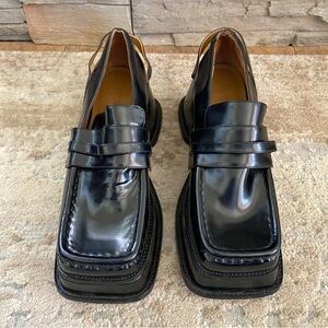 Shushu/Tong Black Platform Loafers Leather Slip On Cult Archival Fashion: 38