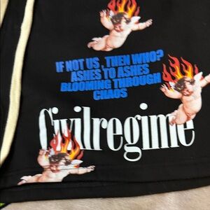 Elevate your workout with Civil Regime's black graphic athletic shorts. Designed for comfort and style.