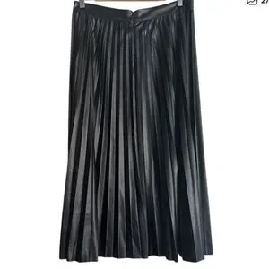 Chic black midi skirt with pleated design. Versatile and stylish for any wardrobe.
