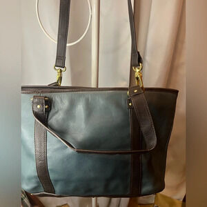Stone Mountain Large Leather Shoulder Bag Green with brown Trim