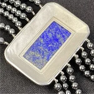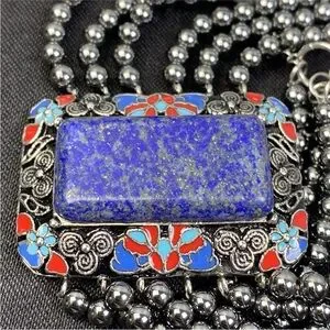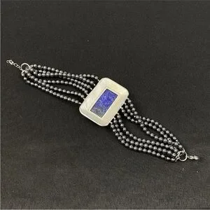 Hanmdade Bracelet Red Blue Enamel Hematite Beads Lapis Lazuli Stone 7" to 8"