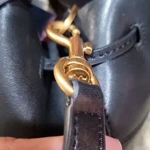 The Tory Burch Drawstring Bucket Bag Purse in black leather is a stylish and chic accessory for women. With its unique drawstring closure and bucket style, this bag is perfect for carrying essentials in a fashionable way. high-quality product for any chic outfit.