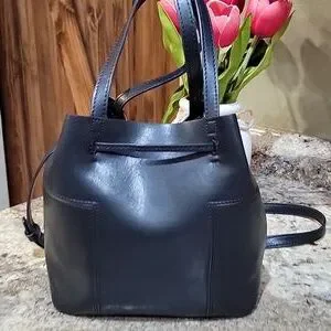 Tory Burch EUC Mini Drawstring Bucket Bag Purse Black Leather