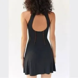 Brand new with tags. Excellent condition. Black & Orange. Ribbed. Halter neckline. Exposed seams. Cut out on back. Mini length. Has a lot of stretch. Very soft material. Perfect for fall Great to layer with!