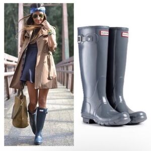 Hunter Original Tall Gloss Rainboots in Feather (Pale Grey), sz US 8, EU 39