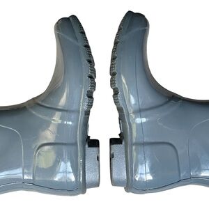 Hunter Original Tall Gloss Rainboots in Feather (Pale Grey), sz US 8, EU 39, In Excellent Barely Worn Condition (just a little wear to the buckles - see last pic - but otherwise almost new!). Please refer carefully to all pics. Retail for $175