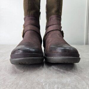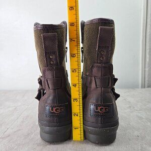 UGG Moto Ankle Boots 6 Dark Brown Leather Grunge Buckle Biker Shearling Booties