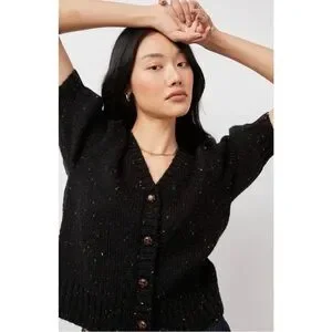 Rails Isla Black confetti Speckled wool blend Cardigan sweater