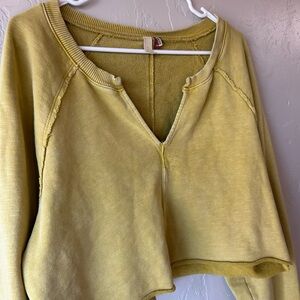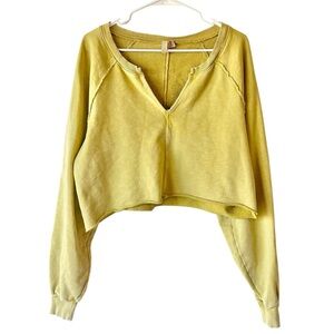 Anthropologie Pilcro Chartreuse Mustard Yellow Notch Neck Cropped Sweatshirt