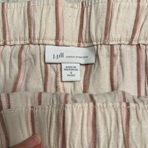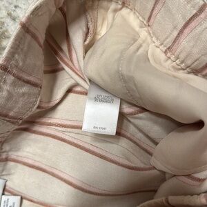 Very cute cream and striped cropped pan, linen stretch blend, 22 inch inseam, elastic waist with belt.