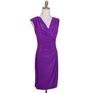 Lauren Ralph Lauren Sleeveless Cowl Neck Dress Size 6 Solid Purple Pleated