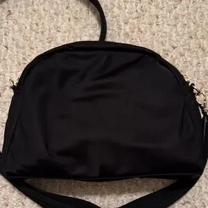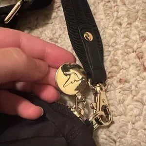 Discover elegance with the Black Nylon Crossbody Bag. Featuring a sleek black exterior and luxurious gold hardware, this bag is perfect for any occasion. The lavender interior adds a touch of sophistication.