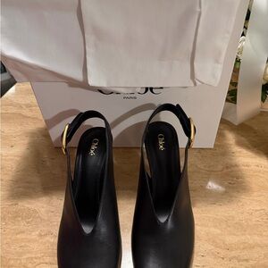 Sophisticated black heels with a chic gold detail. Perfect for any stylish ensemble.