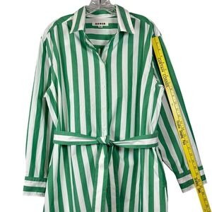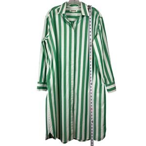BODEN Relaxed Long Sleeve Cotton Midi Shirt Dress, Green and White Striped, 12R