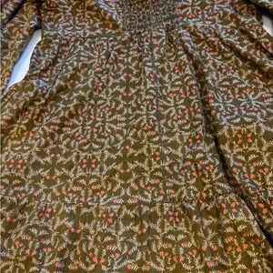 Universal Thread Floral Smocked Dress Large Olive Boho