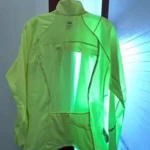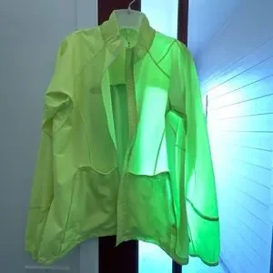 The first two pictures show the color the best…a neon almost fluorescent like green with reflective detail.