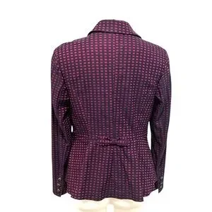 ModCloth navy maroon grid print bow back peblum blazer size large