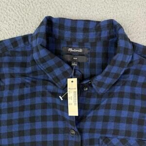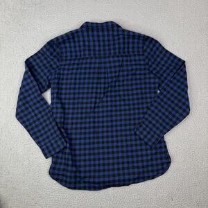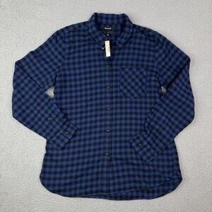 Madewell Slim Fit Long Sleeve Blue Black Plaid Flannel Button Up Shirt Women's L
