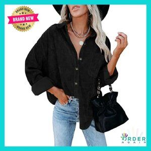 Corduroy Shacket Jacket Button Down Blouse Oversized Chic Casual Wear