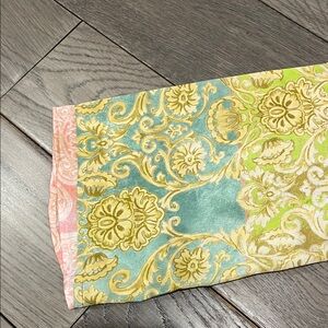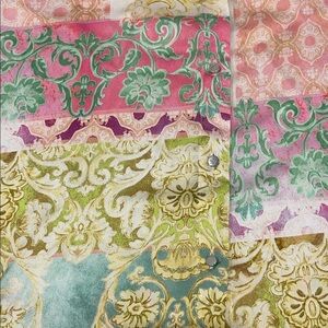 Stylish shirt with multicolor patterns. Features a mix of pastel shades. Ideal for a chic look. Satin material. Only worn once.