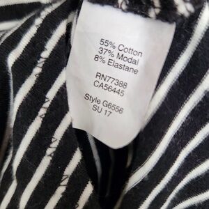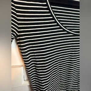 Pre owned overall excellent condition. This has been worn and washed and has minor wash wear (pictured). Super cute and soft black and white short sleeve scoop neck bodysuit. WOMENS size xxs.