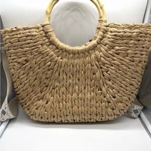 NWT Haute Hippie Straw Bag Bamboo Handles Handbag Purse Tote Seagrass EE, Boho Strap