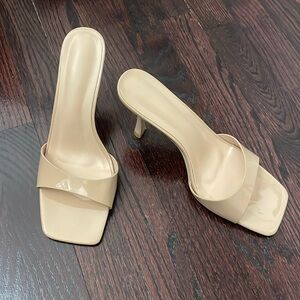 Square Toe Stiletto Heeled Sandals Slip On Mule 3” Heel.Nude Sz 40 Excellent