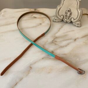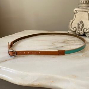 J. Crew Tan Leather And Teal Green Color block Belt - Size Medium