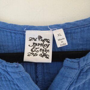 Parsley & Sage Blue Blouse Top Shirt Muslin Gauzy Cotton Boho Lagenlook Size XL