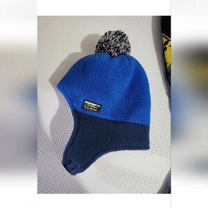 Cozy blue fleece hat with a playful pom. Features L.L.Bean logo. L.L. Bean Toddler Fleece Pom Hat 12-24M Blue Sherpa Trapper Winter Cozy Outdoor