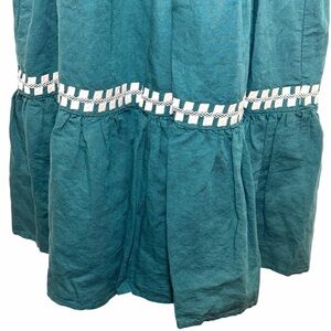 Madewell Green Embroidered Linen-Blend Flutter-Sleeve Mini Dress Size L