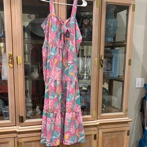 Embrace vibrant style with this tropical pink maxi dress. Perfect for sunny days and casual outings.