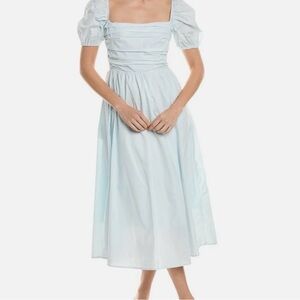 Embrace elegance with this chic light blue midi dress. Featuring stylish puff sleeves, it's perfect for any occasion.