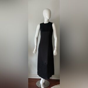 GEM Satin Slip midi Dress — Black Minimalist Bias Cut | XS