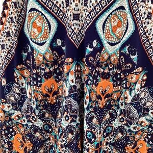 Stylish camisole with intricate patterns. Features navy and orange hues. Perfect for casual outings.